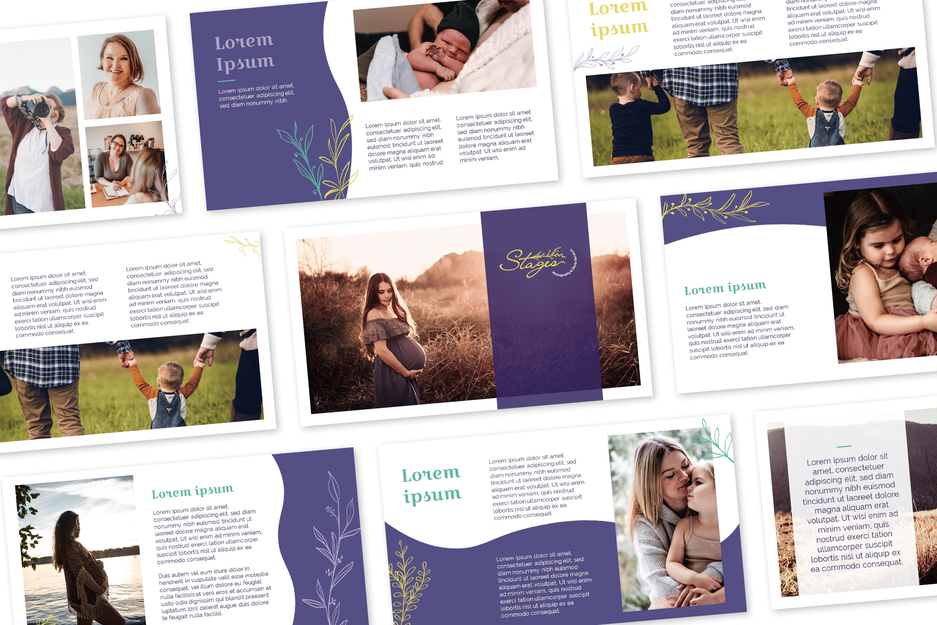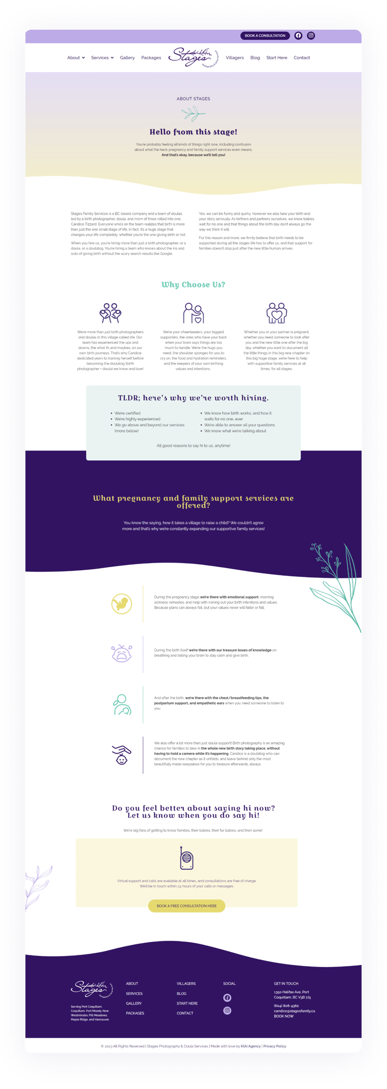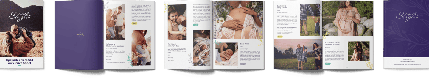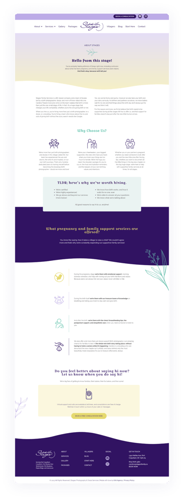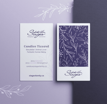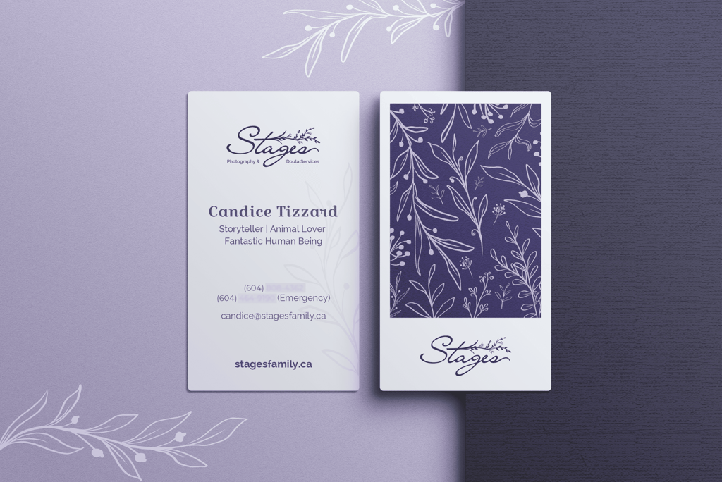 A Stages é uma empresa com sede no Canadá, com uma equipe de doulas liderada por uma fotógrafa de nascimento e também doula, Candice Tizzard. A marca e a identidade visual foram desenvolvidas pela KIAI Agency, na qual contribuí apenas com os materiais aqui apresentados.